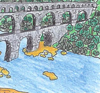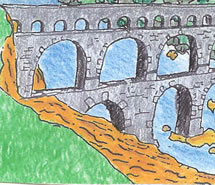 Damit die Römer in ihren Städten genug Wasser bekommen, müssen sie es oft von weit entfernt herbeischaffen. Deshalb bauen sie lange Wasserleitungen, die man Aquädukte nennt. Diese Leitungen werden zumeist schief angelegt, damit das Wasser zügig fließen kann. |