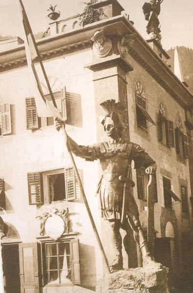 Die knapp über 5 m hohe Monumentalfigur stellt eigentlich, was die Kleidung anbelangt, nicht einen einfachen Legionär dar, sondern einen hervorragenden Feldherrn. Dieser geschnitzte „Römische Legionär“ ist eine auch über die Grenze Südtirols hinaus bekannte, einzigartige Skulptur. Damit sie auch weiterhin erhalten bleibt, wurde sie 2001 in Bronze geschossen.
