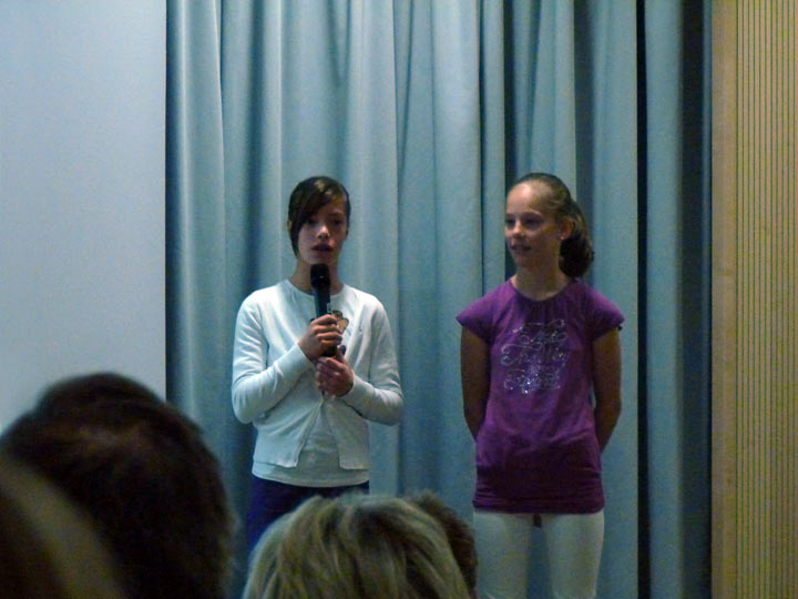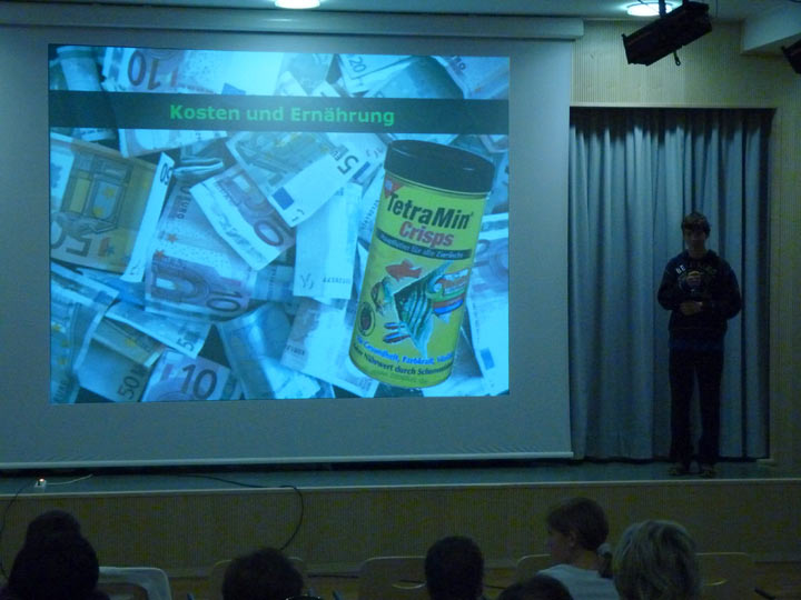 Am Mittwoch, den 15. Juni 2011 um 9 Uhr war es so weit. Zur Vorstellung des Projektes waren zahlreiche Eltern und einige Lehrpersonen eingetroffen. In der Aula Magna der HO wurde der theoretische Teil abgehalten. In Referaten wurden die Ergebnisse der Recherchen vorgetragen. Gekonnt brachten die Schüler die teils auch längeren Vorträge über die Bühne. Zur Auflockerung wurden einige Szenen aus Tiergeschichten gespielt, selbst geschriebene Fabeln vorgelesen und umgedichtete Lieder gesungen.