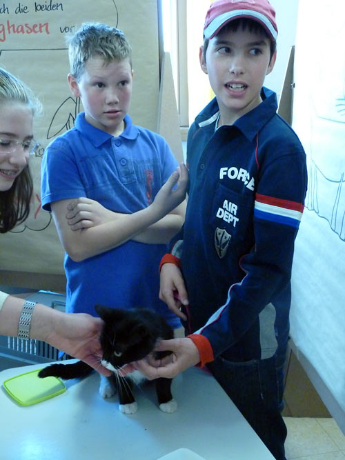 Alle Anwesenden unterhielten sich eifrig und konnten am „tierischen“ Buffet Selbstgebackenes, belegte Brötchen und leckere Säfte aus Tierprodukten verkosten.